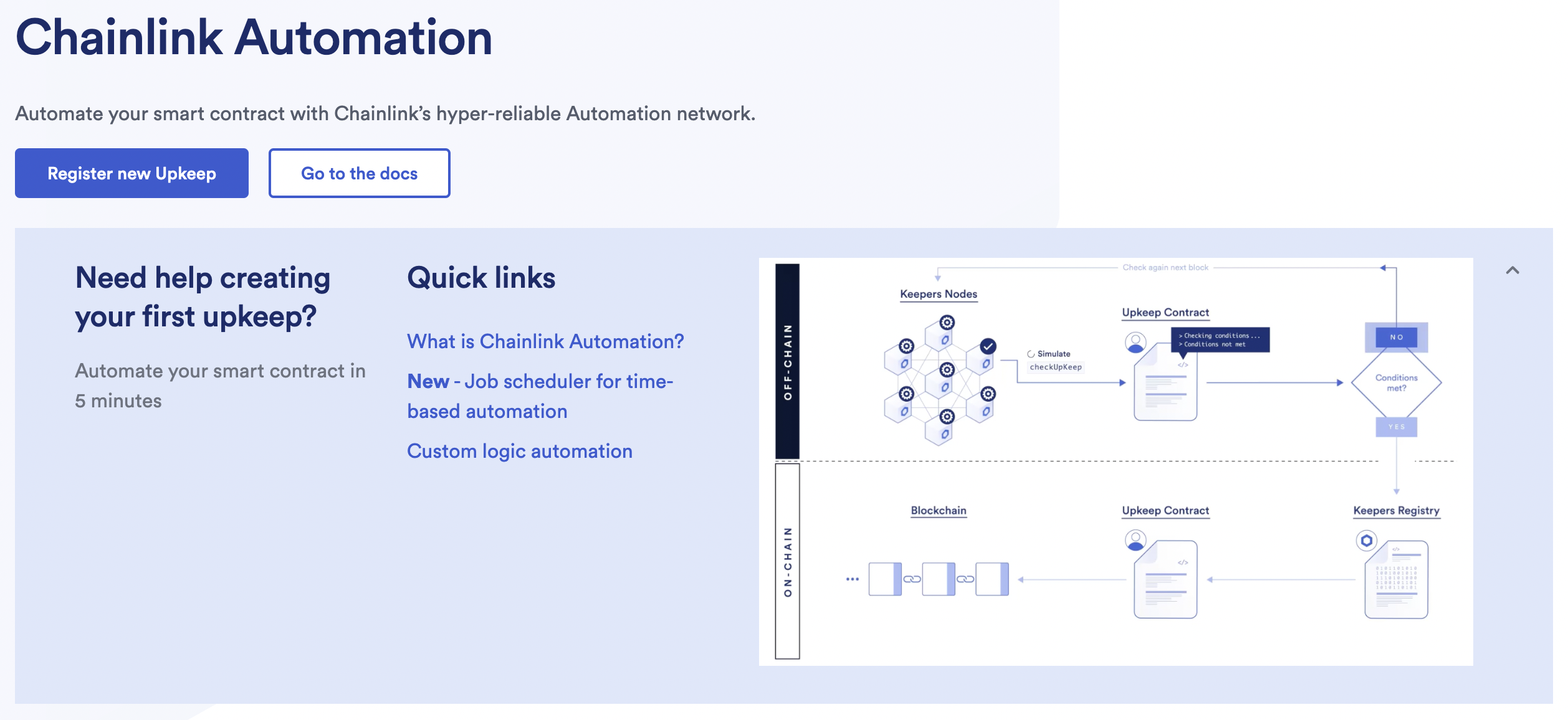 Create powerful automation for your smart contract using time schedules without having to create Automation-compatible contracts. This guide explains how to register time-based upkeeps.