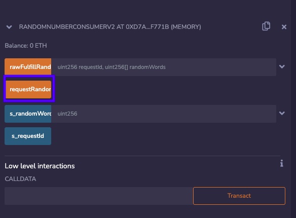 2. Under DEPLOY & RUN TRANSACTIONS, select RandomNumberConsumerV2_5.